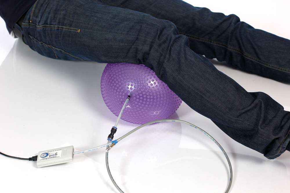 PAB(Pressure Air Biofeedback)即空气压力反馈,它用于肌肉的功能诊断,提供肌肉性能的信息,同时它也是一个很有用的等长训练工具。与测量肌肉电活动(肌电图)的方法相比,PAB方法更容易使用且省时省力。它通过测量内部空气压力来记录人在充气的TOGU工具上施加的力量。强度测量是动态的,在电脑屏幕上显示为曲线。测量的持续时间可以任意调整,根据所选择更大强度的持续时间,可以看到肌肉疲劳的曲线图。该产品每秒记录100次测量数据,这样即使快而非常小的力量变化也能描绘出来。